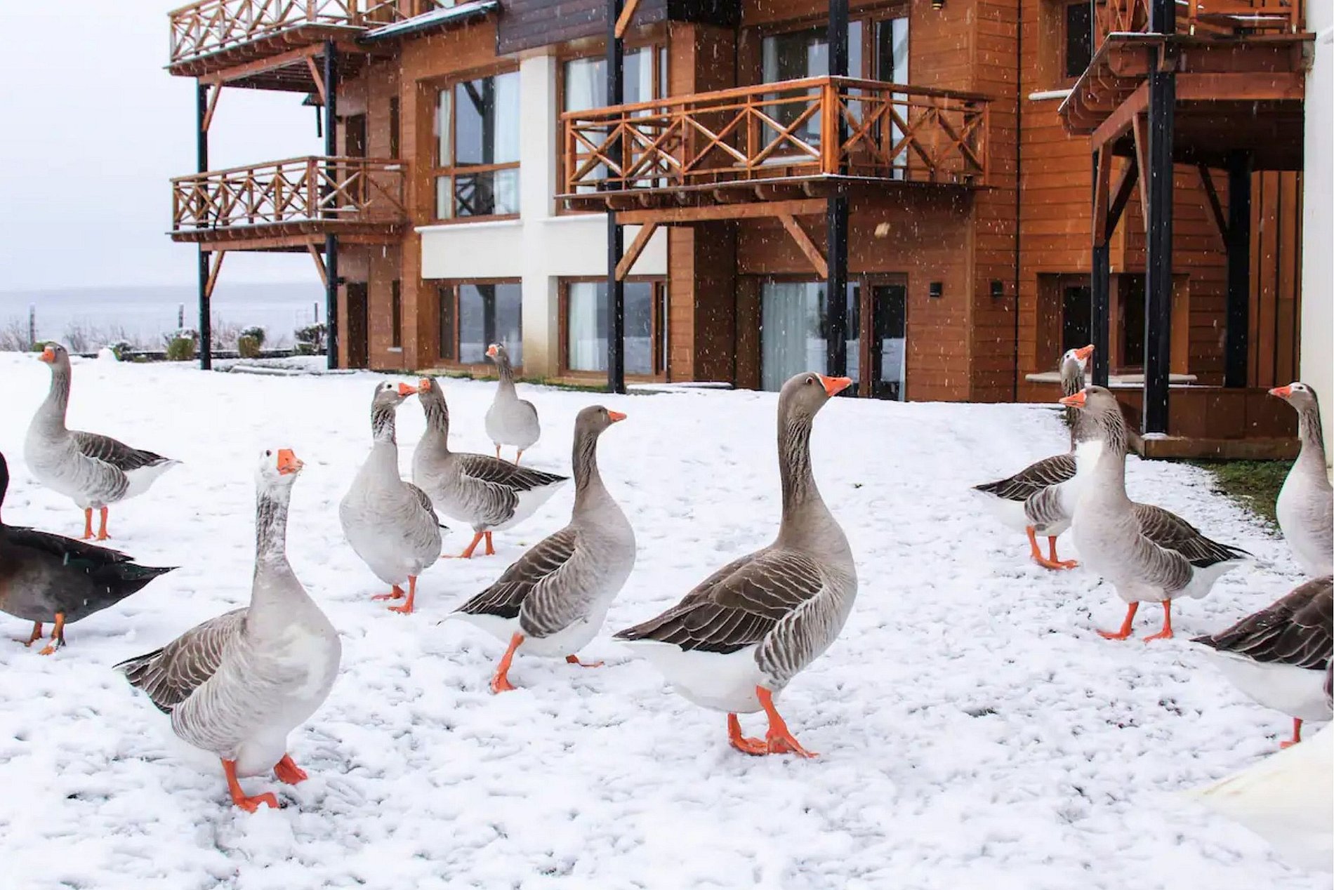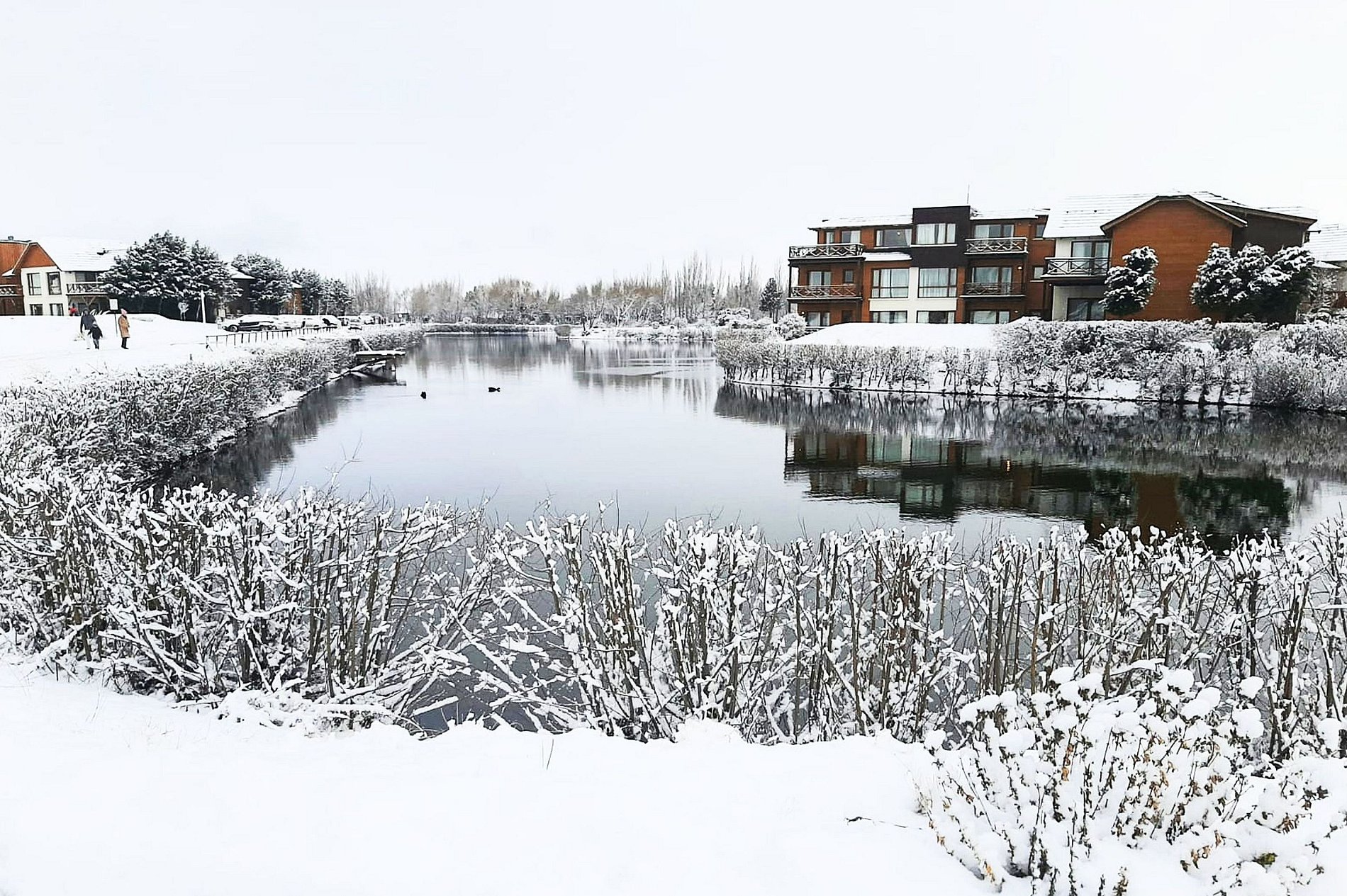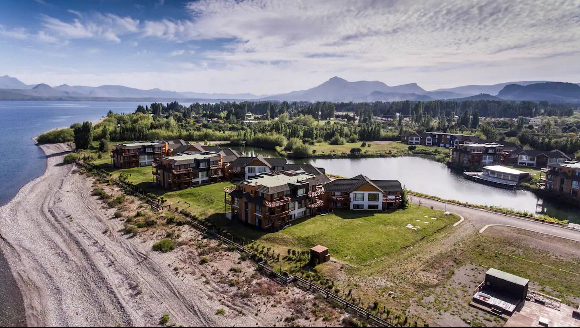 The Resort is located on the shores of Lake Nahuel Huapi, in the town of Dina Huapi, Rio Negro, 14kms from downtown Bariloche. Our flats offer an unbeatable view. The complex has 300 metres of beach on the lake, and a beautiful lagoon with ducks and fish and a beautiful swimming pool only open in summer.