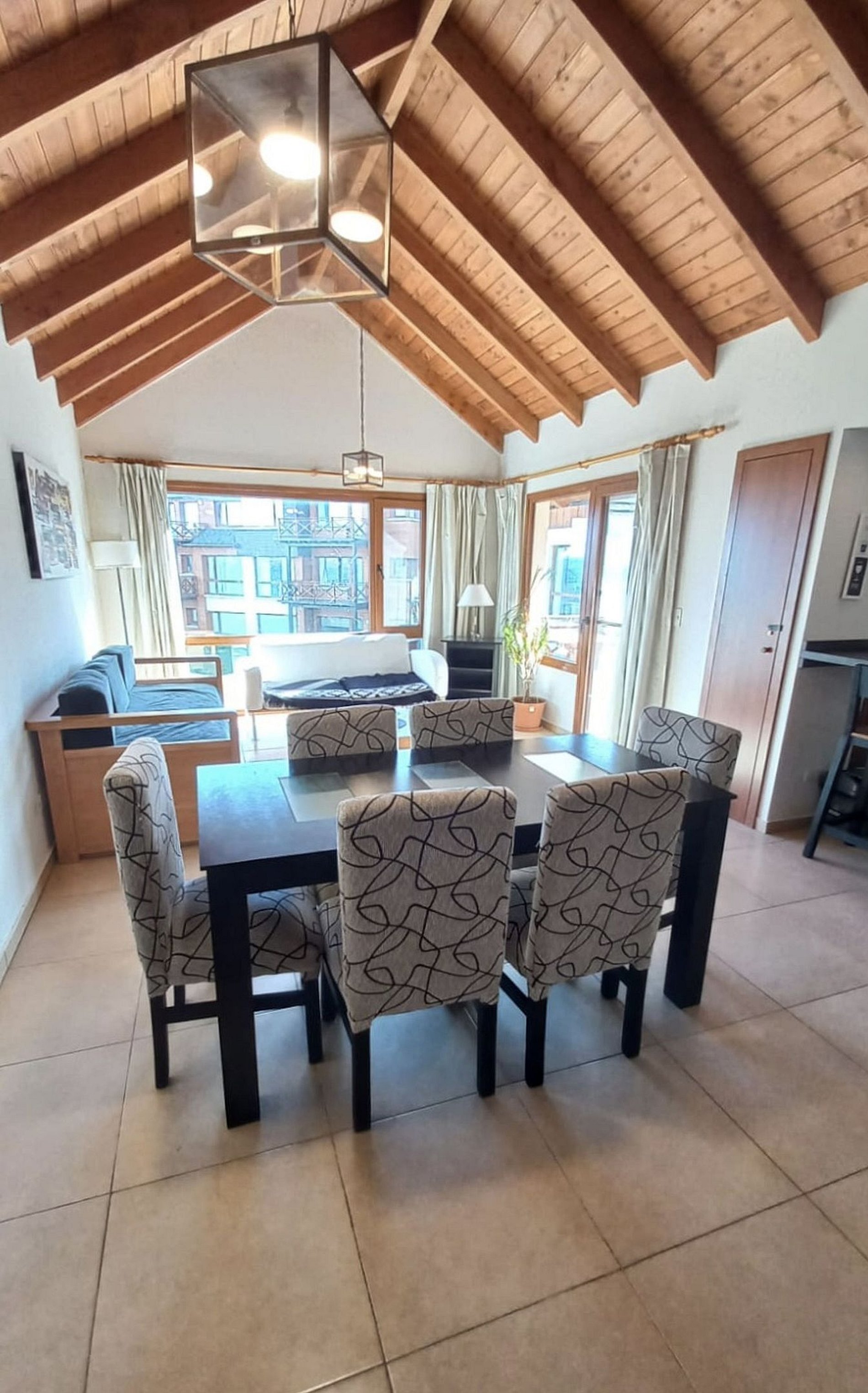 Exclusive 2 bedroom, 2 bathroom apartment for 6 people on the second floor overlooking Nahuel Huapi Lake. It has a bedroom with a queen size bed, another bedroom with 2 single beds and a double sofa bed (bed + trolley bed) in the living room.