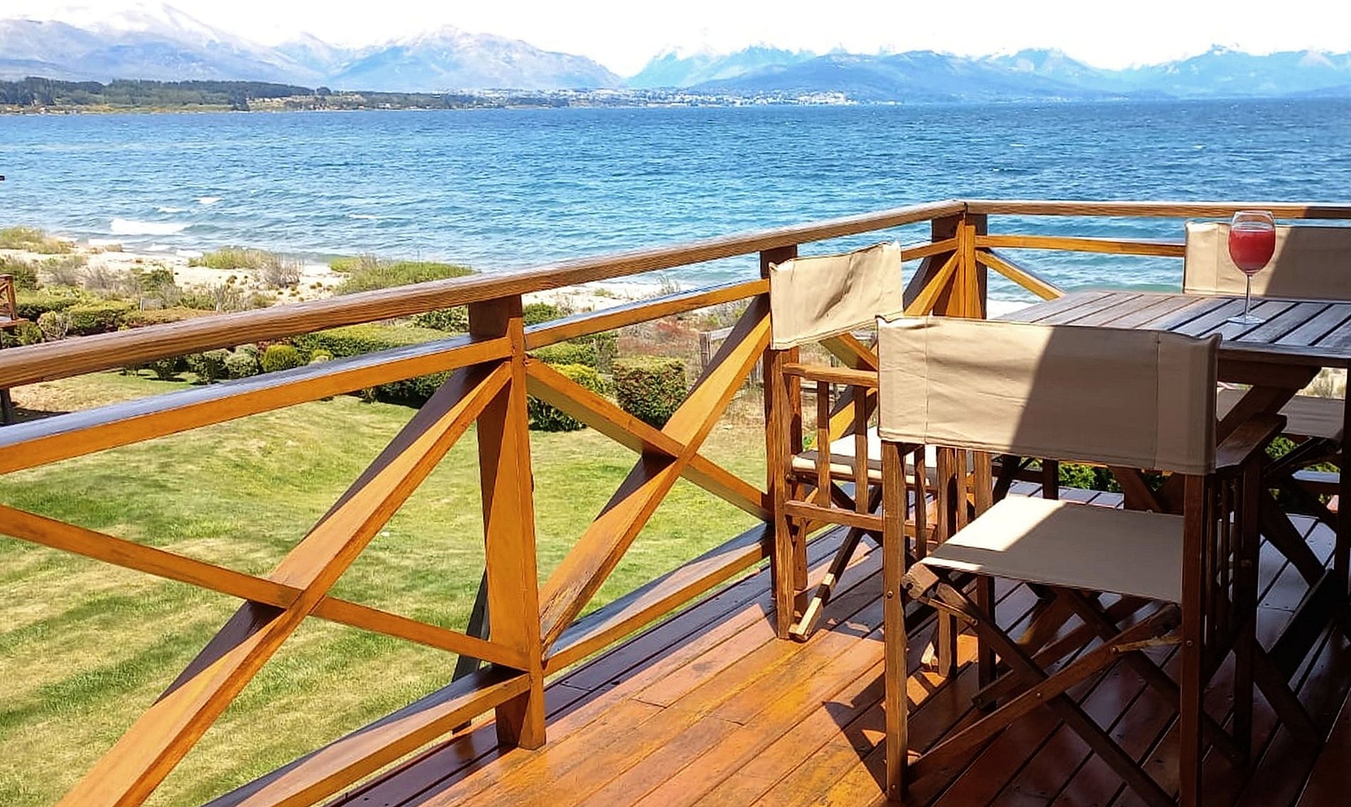 The Resort is located on the shores of Lake Nahuel Huapi, in the town of Dina Huapi, Rio Negro, 14kms from downtown Bariloche. Our flats offer an unbeatable view. The complex has 300 metres of beach on the lake, and a beautiful lagoon with ducks and fish and a beautiful swimming pool only open in summer.
