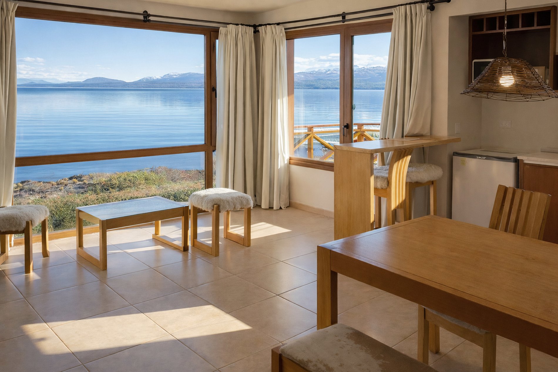 Exclusive 2 room apartment for 4 people on the second floor in front of Nahuel Huapi Lake with view to the lake and mountains.