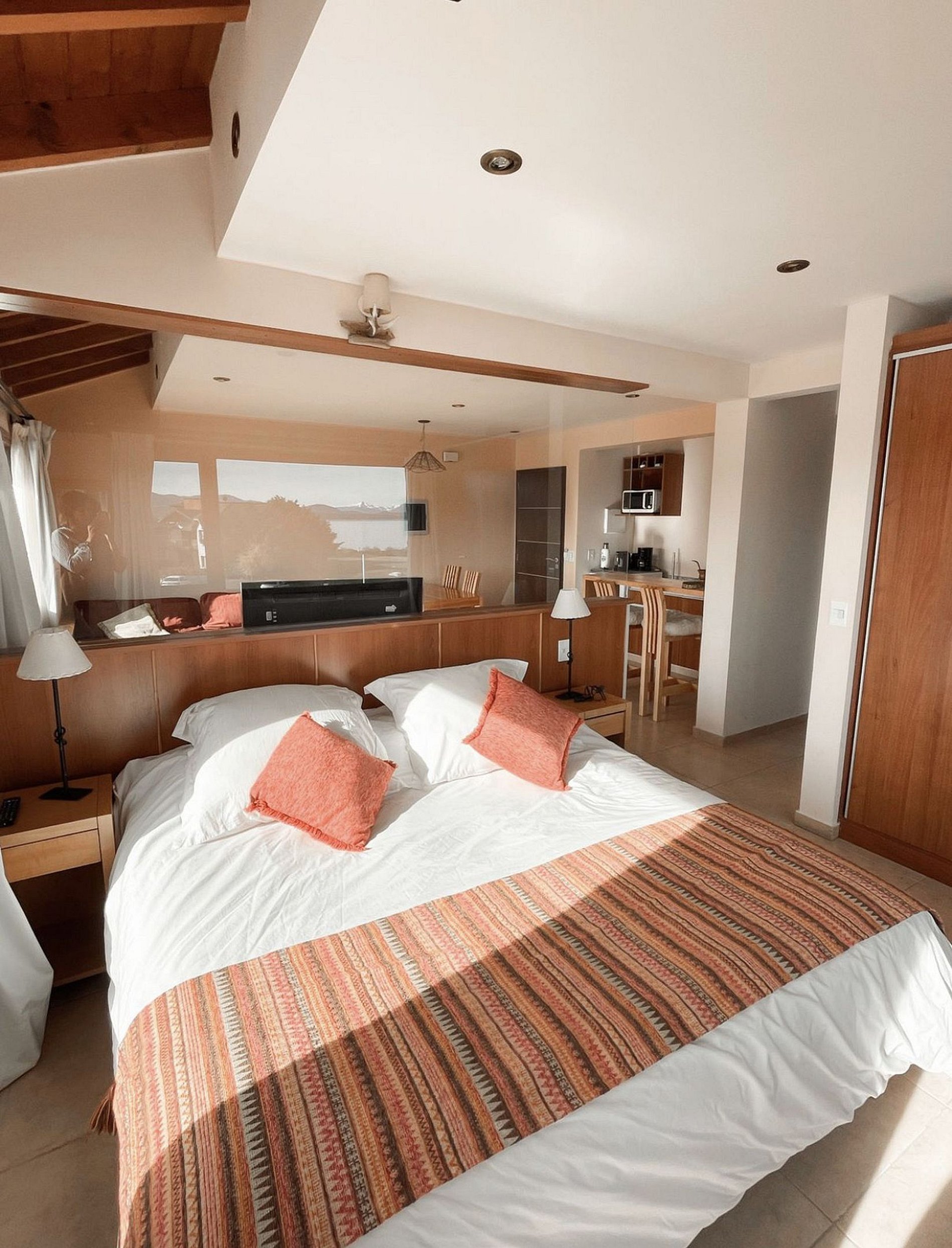 Exclusive one-bedroom loft for 4 people on the second floor in front of the Lagoon with view to Bariloche and the mountains.