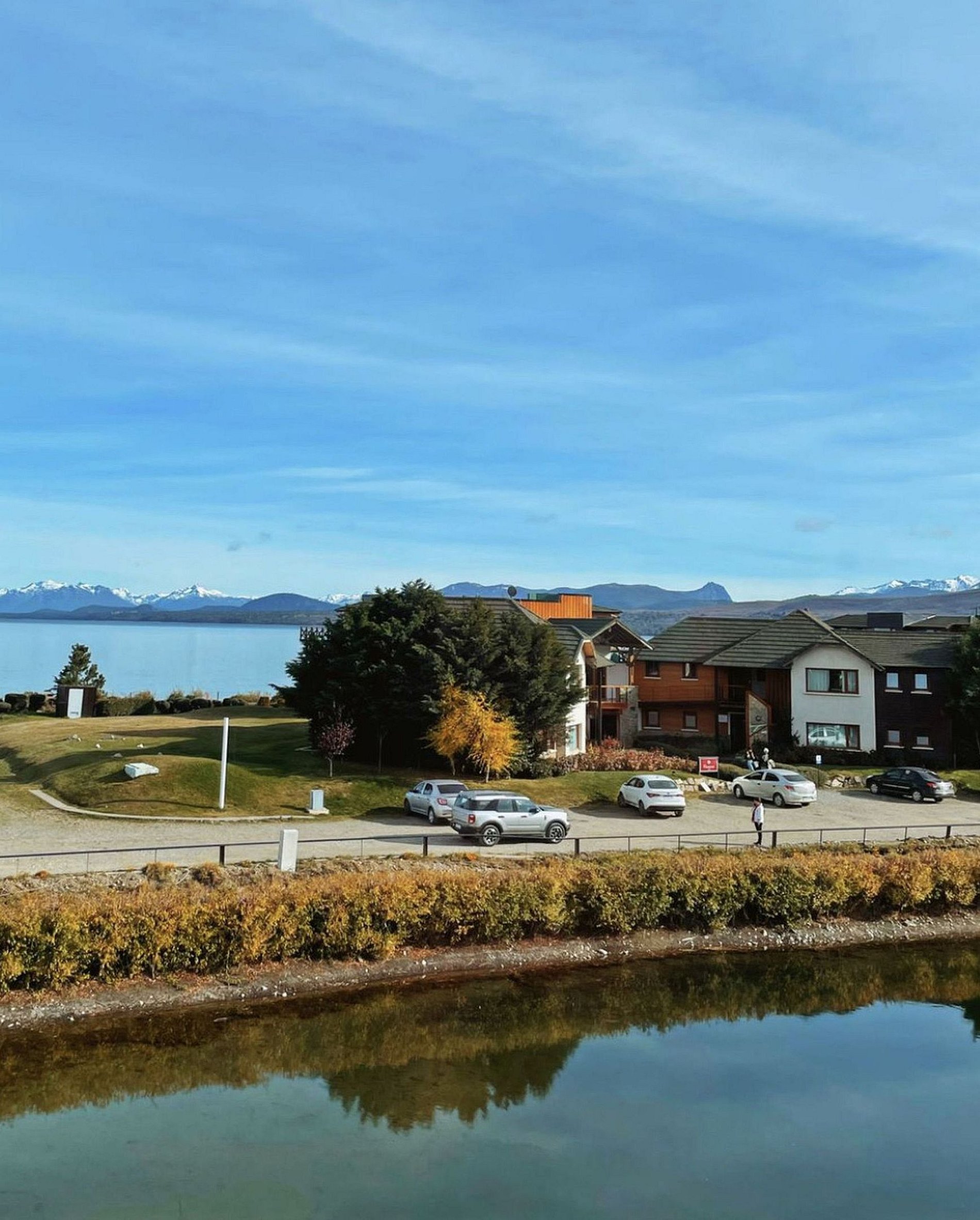 The resort is located in Dina Huapi, 5' from supermarkets and restaurants, and 14 km (18') from the centre of Bariloche. We have 300 meters of beach on the Nahuel Huapi lake, gardens and green areas, and a beautiful lagoon with swimming pool in summer (mid-December to mid-March), free for our guests.