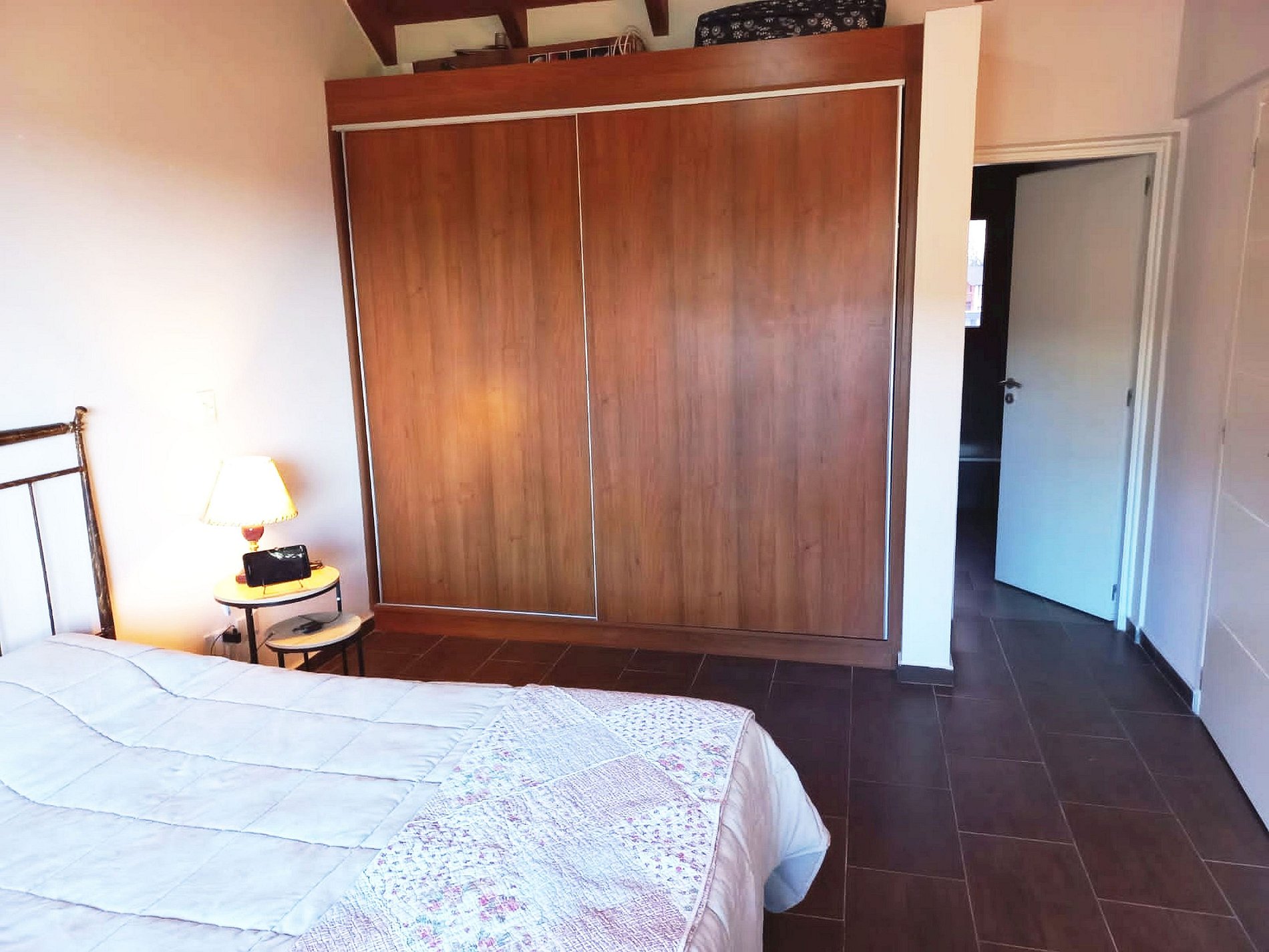 El equipamiento incluye anafe eléctrico, horno eléctrico, tostadora, cafetera, microondas, heladera grande y secador de pelo.