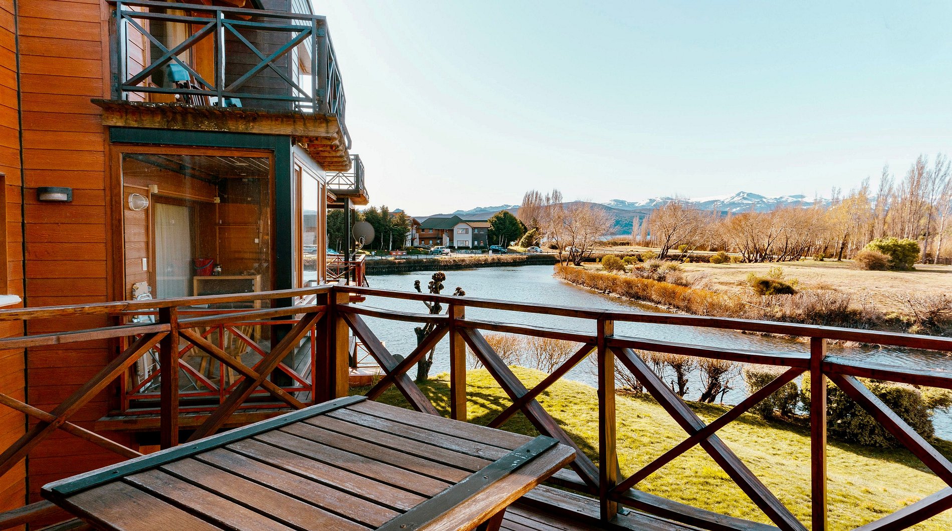El Resort se encuentra localizado a orillas del Lago Nahuel Huapi, en la localidad de Dina Huapi, Río Negro, a 14kms del centro de Bariloche. Nuestros departamentos ofrecen una inmejorable vista. El Complejo tiene 300 metros de playa sobre el lago, y una hermosa laguna patos y peces y con una hermosa pileta habilitada sólo en verano.