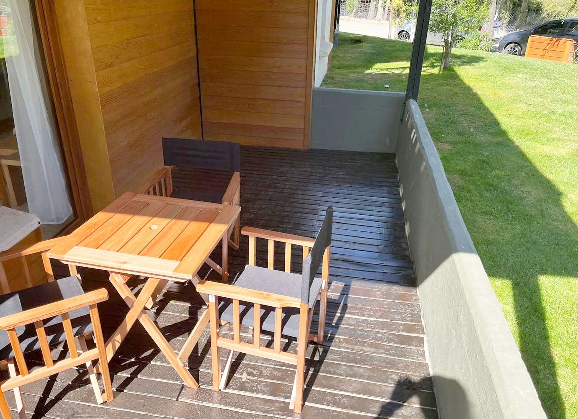 Loft mono ambiente en Planta Baja para 3 personas con vista al jardín cerca de la piscina. Tiene una cama matrimonial king size y un sofá cama individual. El departamento se encuentra muy bien equipado, con heladera bajomesada, anafe eléctrico, tostadora, pava, cafetera, microondas y secador de pelo.