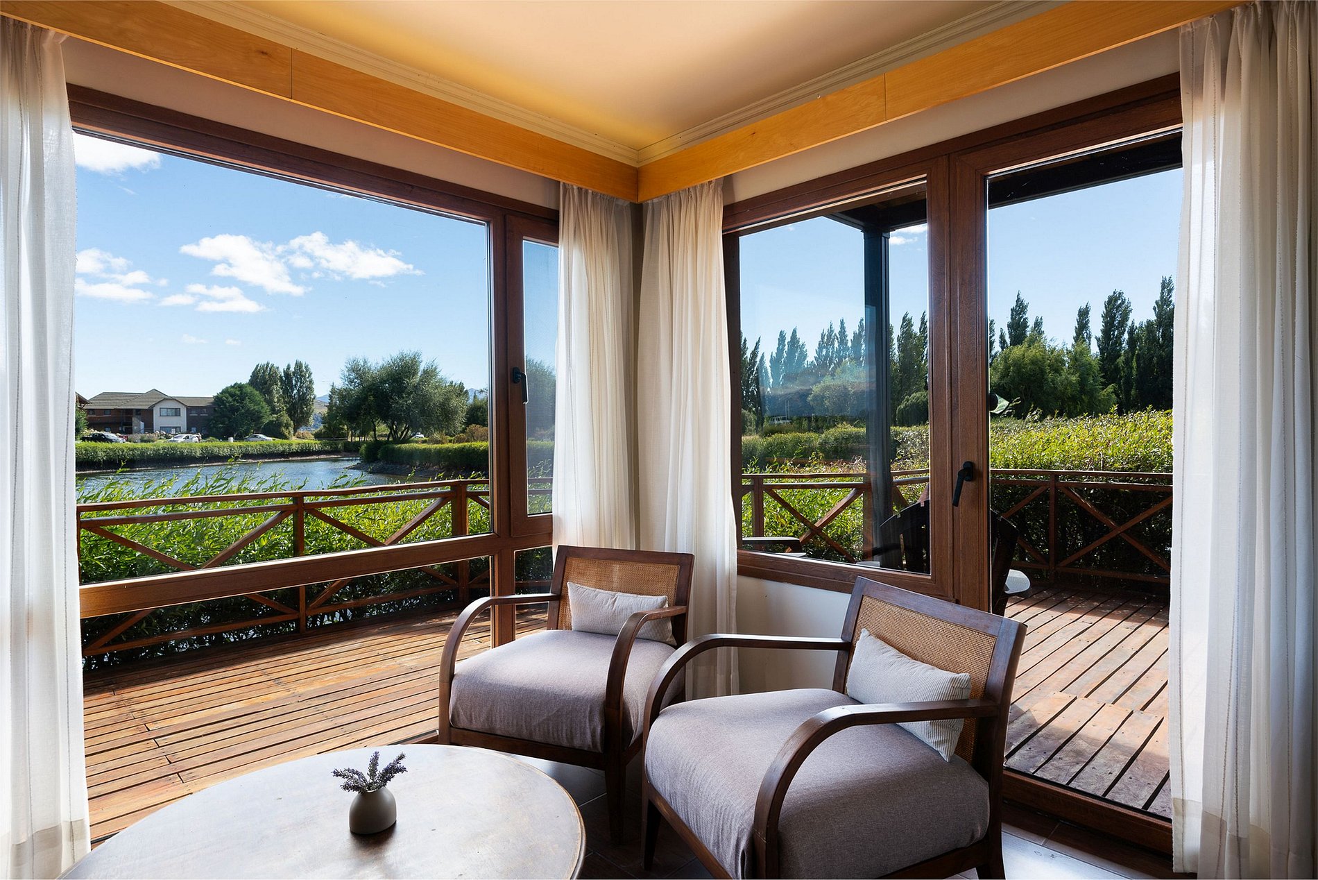 O resort está localizado em Dina Huapi, a 5' de supermercados e restaurantes e a 14 km (18') do centro de Bariloche. Temos 300 metros de praia no lago Nahuel Huapi, jardins e áreas verdes, e uma bela lagoa com piscina no verão (de meados de dezembro a meados de março), gratuita para nossos hóspedes.
