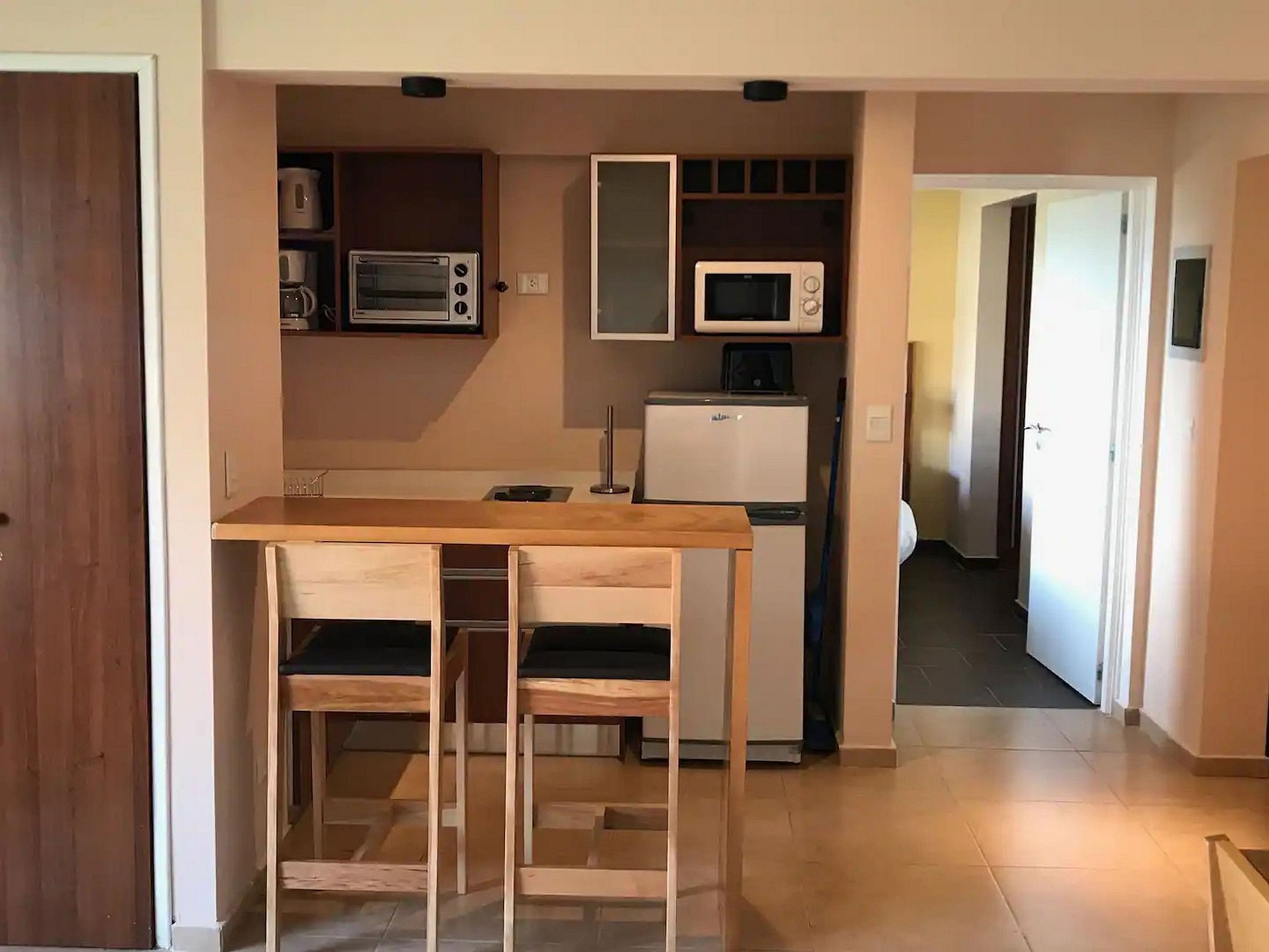 O apartamento é muito bem equipado, com fogão elétrico, forno elétrico, torradeira, cafeteira, micro-ondas, geladeira grande e secador de cabelo.