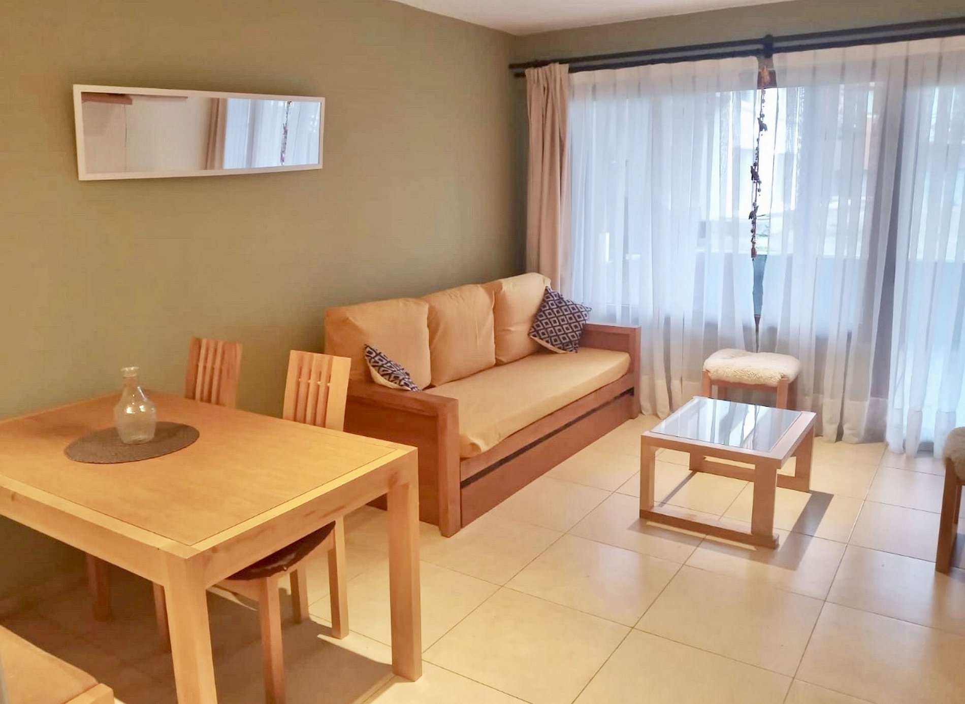 O apartamento fica no andar térreo e tem uma bela vista para o jardim e o lago. É espaçoso e bem equipado. Tem móveis de jardim. Fica muito próximo da saída para a praia. O estacionamento fica bem próximo à entrada do apartamento. Você estará hospedado em um ambiente de natureza e vistas únicas!